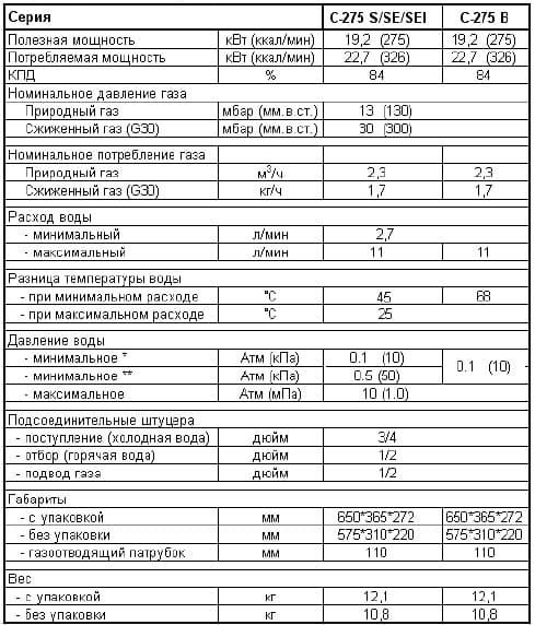 Газовая колонка Demrad C 275 S позволяет регулировать расход воды на приборе. Отличается совершенной системой безопасности, которая включает термоэлектрический предохранительный датчик пропадания пламени, предохранитель высокого давления в контуре водоснабжения, датчик-контролер запальной горелки, предохранитель перегрева водяного контура, датчик контроля тяги в дымоходе, датчик-предохранитель подачи газа, датчик расхода воды. Колонка C 275 S может быть настроена для работы на сжиженном газе.
